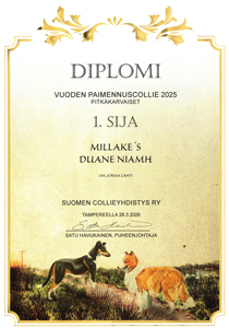 Saavuttanut ensimmäisenä pitkäkarvaisena collienarttuna FCI traditional
